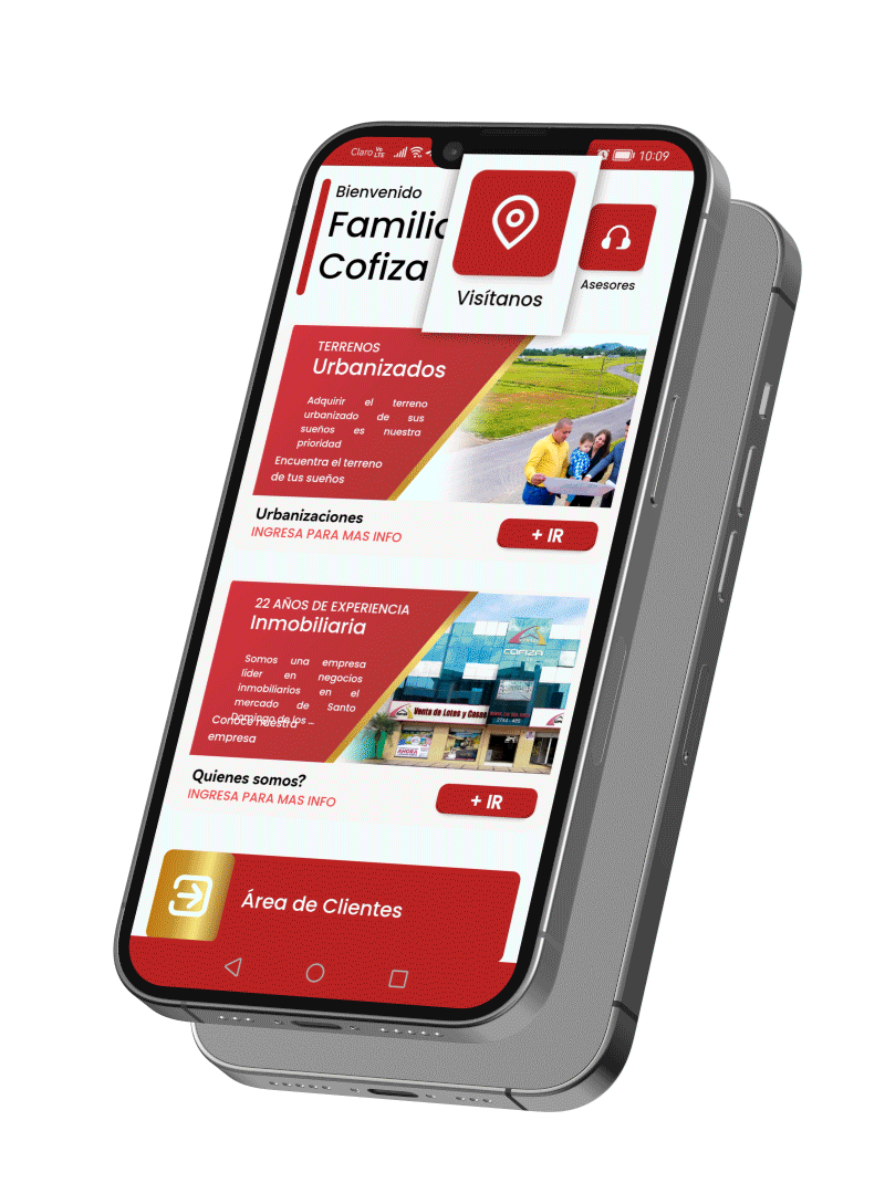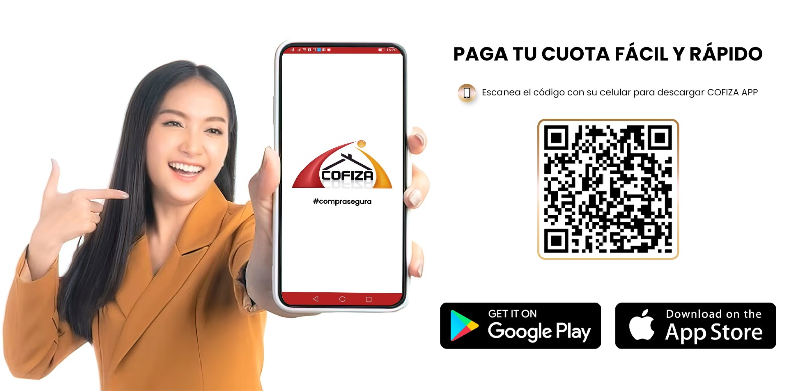 La App Cofiza, es una aplicación para celular o tablet que está disponible 24/7. Desde cualquier parte, podrás pagar tus cuotas mensuales y subir comprobantes de tus pagos. también podrás consultar tu saldo pendiente, ver proyectos urbanizados nuevos y mucho más.